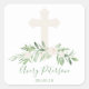 Pegatina Cuadrada Elegante Rosa de Marfil Cruz Santa Comunión