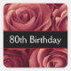 Este diseño de rosas rojas hace un elegante pegatina de cumpleaños número 80. Se puede usar para vestir tus invitaciones de cumpleaños o tus favores de fiesta de cumpleaños.