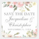 Pegatina Cuadrada Elegante Save the Date floral rosa marfil