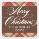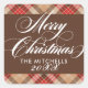 Pegatina Cuadrada Elegante Tan Brown Tartán Jugar Feliz Navidad