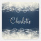 Personaliza con tu nombre. Un elegante diseño abstracto con encaje de color crema y perlas hechas con círculos y burbujas. El fondo es azul oscuro con cuadrados descoloridos hacia el lado. Bonito y delicado diseño.