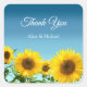 Pegatina Cuadrada Elegantes girasoles en el cielo azul Gracias