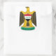 Escudo del Iraq. El escudo de armas o emblema del estado de Irak es un águila negra dorada que mira hacia el dextro izquierdo del espectador. El águila es el águila de Saladin, asociado con el panarabismo del siglo XX, que lleva un escudo de la bandera iraquí, y sostiene un pergamino con las palabras árabe・, con las palabras árabe・e・・・・(JumæAl-Iraq o "República del Iraq").