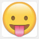 Cara con lengua agarrotada, cara descarada que saca la lengua en broma. Usada como una manera de decir "estoy bromeando" o generalmente siendo jovial y no serio.