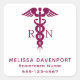 Pegatinas de enfermería registrados personalizados con su información. Diseñado con un elegante símbolo caduceus rojo con las letras R N a cada lado. Diseño minimalista sencillo.