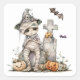 Pegatina Cuadrada Enredo de Lápida – Momia con Sombrero de Bruja