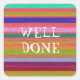 Un diseño artístico abstracto de rayas horizontales de pintura en colores arcoiris de rosa, turquesa, azul, verde y amarillo con un lema bien hecho adecuado para el uso del profesor.