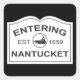 Pegatina Cuadrada Entrando en Nantucket Est. Rótulo en blanco y negr