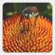 Una fascinante foto de cierre de un insecto arrastrándose a través del centro rojo y amarillo de una flor.
