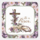 Pegatina Cuadrada Es la Cruz Floral de Risen con la Biblia