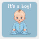 Niño lindo vestido con pijama azul en un fondo azul. It's a Boy!
