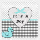 Es un niño Anuncio de nacimiento lindo para niños con un pato. Flores y fondo a cuadros