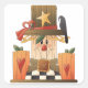 Pegatina Cuadrada Escaramuza de otoño rústica con calabazas y cuervo