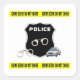 La escena del crimen de oficial de policía incluye auto de policía, insignia, esposas de la policía y cinta de escena del crimen que dice No cruzar.