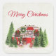 Pegatina Cuadrada Escena Rústica de Camper navidades