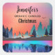 Pegatina Cuadrada Escenario de Winter Lake con Candle Deer Biz