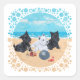 Pegatina Cuadrada Escocia y Westie Pups en la playa