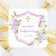 Pegatina Cuadrada Escudo de confirmación flores púrpura rosadas