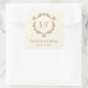 Pegatina Cuadrada Escudo de oro crema Monograma Favor de la boda