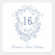 Pegatina Cuadrada Escudo floral azul francés dulce fiesta de cumplea