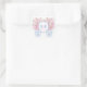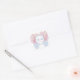 Pegatina Cuadrada Escudo Monograma Preppy Rosa Y Azul Boda