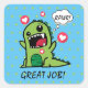 Pegatina Cuadrada Escuela Cute Blue Dinosaur Rawar Great Job School