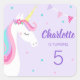 Pegatina Cuadrada Espectacular arco iris Unicornio púrpura quinto cu