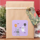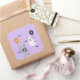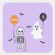 Añade un toque de Halloween a tus favores, invitaciones o regalos de agradecimiento con estos esqueletos personalizados y pegatinas fantasmas cuadrados. Con un esqueleto sonriente que sostiene un globo de nombres y un fantasma amistoso que sostiene un globo de época, rodeado de murciélagos y estrellas doradas sobre un fondo de lavanda pastel. Perfecto para los cumpleaños de octubre, fiestas de Halloween y celebraciones con trucos o dulces.