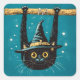 Pegatina Cuadrada Espeluznante Bruja de gato negro volador