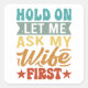 Pegatina Cuadrada Espera, déjame preguntarle a mi esposa primero - D
