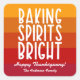 Incorpore nuestro elegante pegatina a sus productos de Acción de Gracias, que presenta un diseño tipográfico blanco "Baking Spirits Bright" sobre un fondo de rayas inspirado en el otoño. Haz que tu regalo sea realmente especial con un mensaje personalizado seleccionando "personalizar esta plantilla". Si tiene preguntas o solicitudes relacionadas con este diseño, por favor contáctenos a través del chat; ¡estaríamos encantados de ayudar!