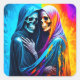Pegatina Cuadrada Esqueletos envueltos en un arcoiris