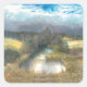 acuarela sobre seda - equipo manual; el agua en el lago refleja el frío cielo otoñal.Artista de Zolotareva.
