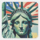 Pegatina Cuadrada Estatua de la Libertad y Bandera Estadounidense en