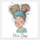 Una dama educada con bollos desordenados está teniendo un día difícil. ¿Alguna vez te sientes así? Aquí hay un gráfico para que sepas que no estás solo. A veces todos nos sentimos así. ¡Las cosas mejorarán!