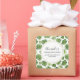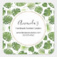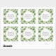 Pegatinas de negocios con un patrón de bonito compuesto de hojas tropicales verdes. Diseño exótico y elegante. Un círculo blanco con un falso borde de Relieve metalizado dorado sobre la parte superior con tu texto dentro.