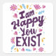 Bonito y genial diseño con la Cita "Estoy feliz de que existes". Muestra tu amor y cariño a tu novio, novia, esposo, esposa papá, mamá, abuelo, abuela de una manera divertida y romántica.
