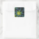 Pegatina Cuadrada Estrella abstracta, arte fractal dorado azul verdo
