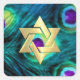 Pegatina Cuadrada Estrella de oro Bat Mitzvah Peacock Morado y Verde