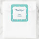 Un pegatina editable de Gracias con guion y letras de serif en un patrón retro de estrella verde azulada y blanca sobre fondo verde azulado claro.