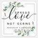 Este diseño moderno dice que difunde el amor no los gérmenes en la tipografía de escritura moderna rodeada de hojas de eucalipto. Personalice su nombre y fecha de boda.
