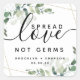 Este diseño moderno dice que difunde el amor no los gérmenes en la tipografía de escritura moderna rodeada de hojas de eucalipto. Personalice su nombre y fecha de boda.