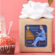 Esta placa personalizada tiene un aspecto de esténcil vintage. Una mujer con un vestido azul se sienta en un escritorio con un bolígrafo levantado mientras una lámpara brilla a su lado. El fondo es azul oscuro. La mujer parece ser de los siglos XIX o XX. El diseño tiene un toque Art Déco moderno con letras cuadradas. El escritorio dice, "Ex Libris", que significa "de los libros / de la biblioteca de" en latín. Usa la plantilla para agregar tu nombre y el año - o elimina cualquier texto que no quieras en la placa del libro. Vea las variaciones de color y más diseños para los amantes de los libros en la tienda BookParadise.