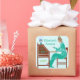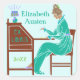 Esta placa personalizada tiene un aspecto de esténcil vintage. Una mujer con un vestido azul turquesa se sienta en un escritorio con un bolígrafo levantado mientras una lámpara brilla a su lado. El fondo es azul verdoso y claro. La mujer parece ser de los siglos XIX o XX, con piel oscura y pelo castaño. El diseño tiene un toque Art Déco moderno con letras cuadradas. El escritorio dice, "Ex Libris", que significa "de los libros / de la biblioteca de" en latín. Usa la plantilla para agregar tu nombre y el año - o elimina cualquier texto que no quieras en la placa del libro. Vea las variaciones de color y más diseños para los amantes de los libros en la tienda BookParadise.