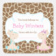 Pegatina Cuadrada Ex libris de la ducha de jirafa de niño y niña ros