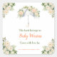 Hermoso sticker de ex libris para baby shower con una sombrilla blanca y arreglos florales de durazno y crema. Perfecto para una fiesta de bebé. Las palabras se pueden cambiar para adaptarse a tus propios detalles o requisitos