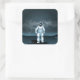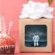Estilo personalizado monocromo gráfico de un astronauta explorando un planeta/masa planetaria
