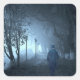 Pegatina Cuadrada Extraño en el parque en niebla nocturna