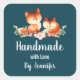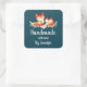 Pegatina Cuadrada Fabricado a mano con amor 2 zorros rojos pequeños