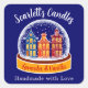 Pegatina Cuadrada Fabricado a mano con amor Nieves Navidad Vela